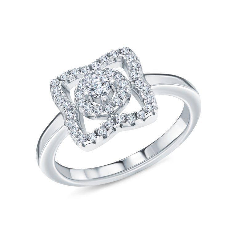 Серебряное кольцо с фианитами S56091-K9W-01 Кольца SUNLIGHT | V4.Ru: Маркетплейс