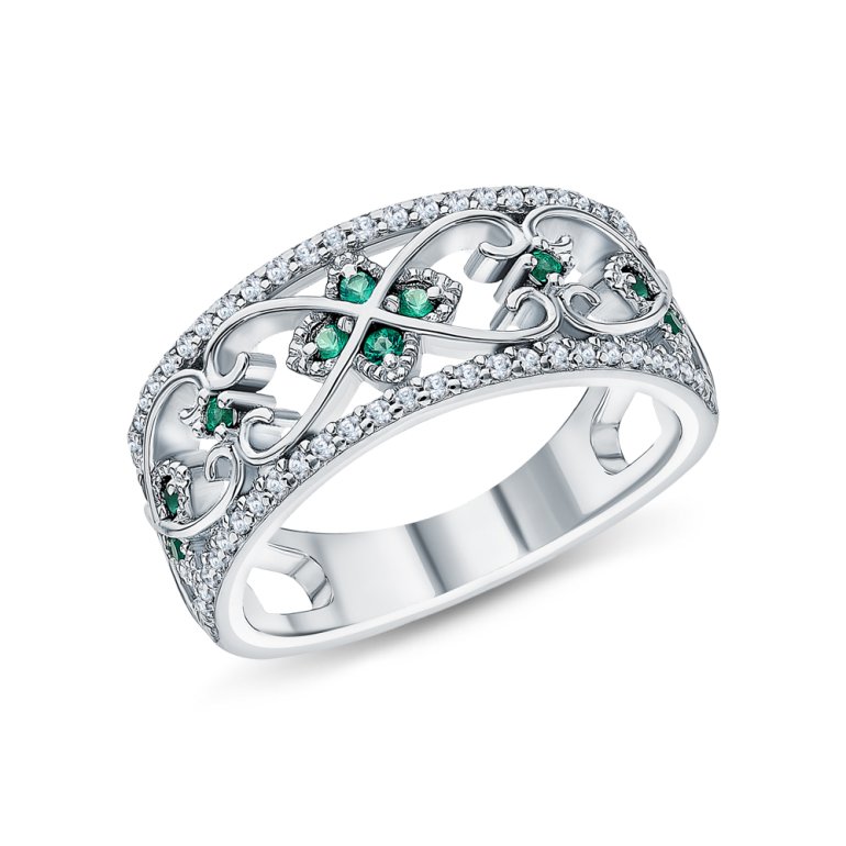 Серебряное кольцо с фианитами и агатами природными S42855-K9W-03 Кольца SUNLIGHT | V4.Ru: Маркетплейс