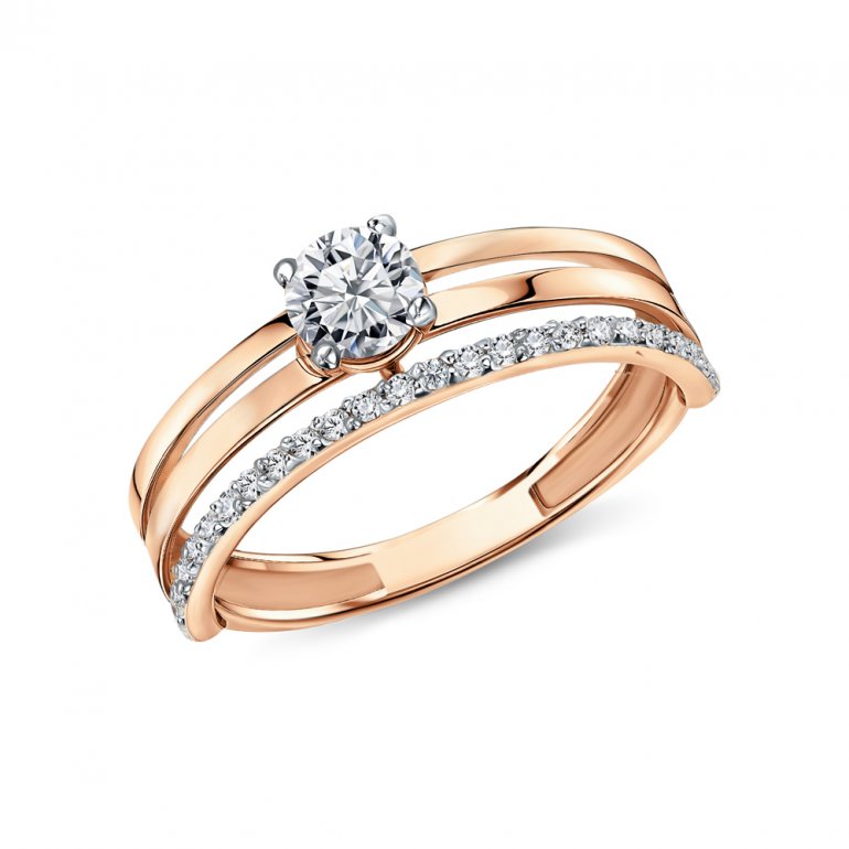 Кольцо, вставка: фианитом бесцветным; Розовое золото 585 пробы.