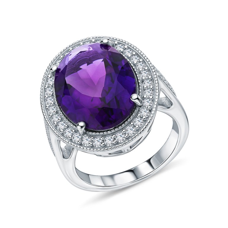 Серебряное кольцо с фианитами и аметистами природными