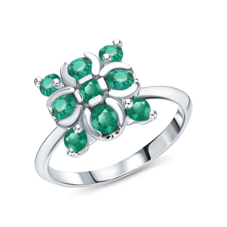 Кольцо с 9 изумрудами природными, 0.689 карат, цвет 4, чистота 3, тип огранки В; Серебро 925 пробы.