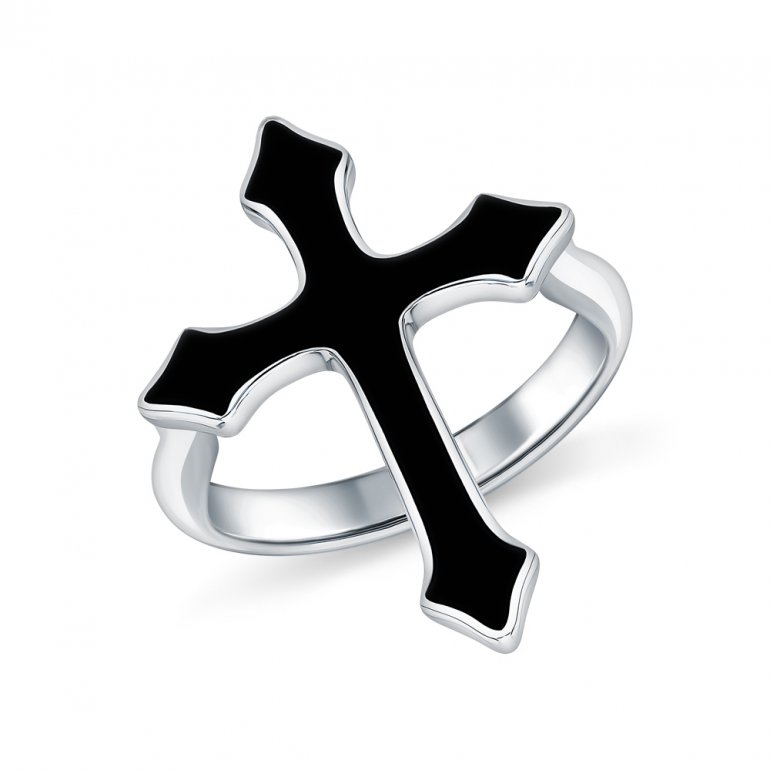 Кольцо, вставка: эмаль черная; Серебро 925 пробы.