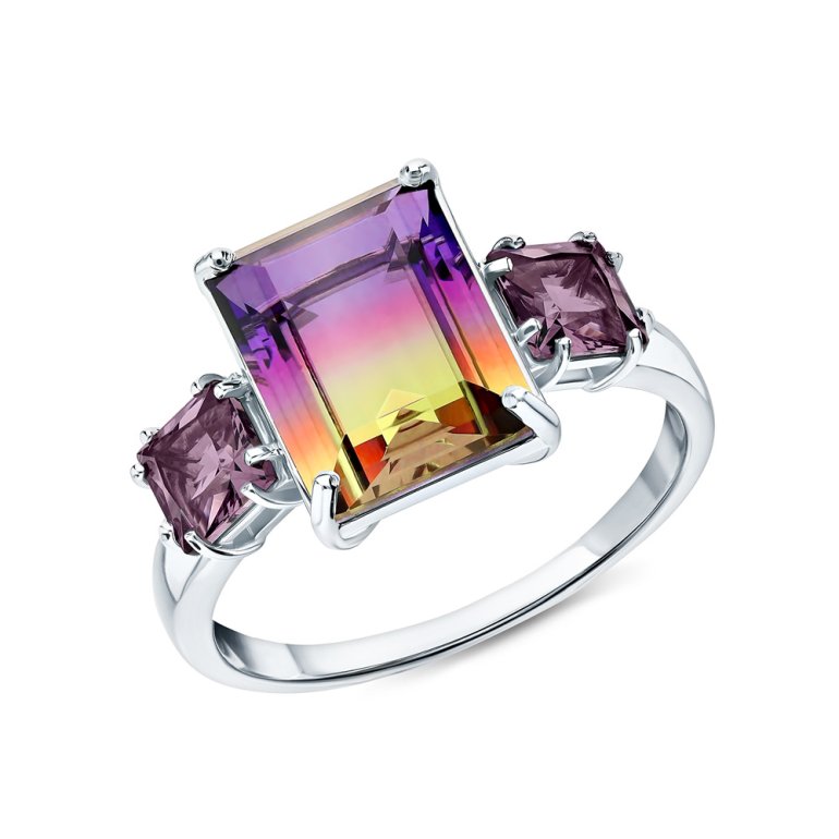 Серебряное кольцо с ювелирным стеклом и аметринами синтетическими 1-10624-1ЭА Кольца SUNLIGHT | V4.Ru: Маркетплейс