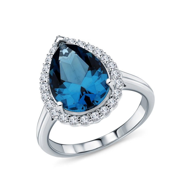 Кольцо, вставка: фианитом бесцветным;  алпанит синий; Серебро 925 пробы.