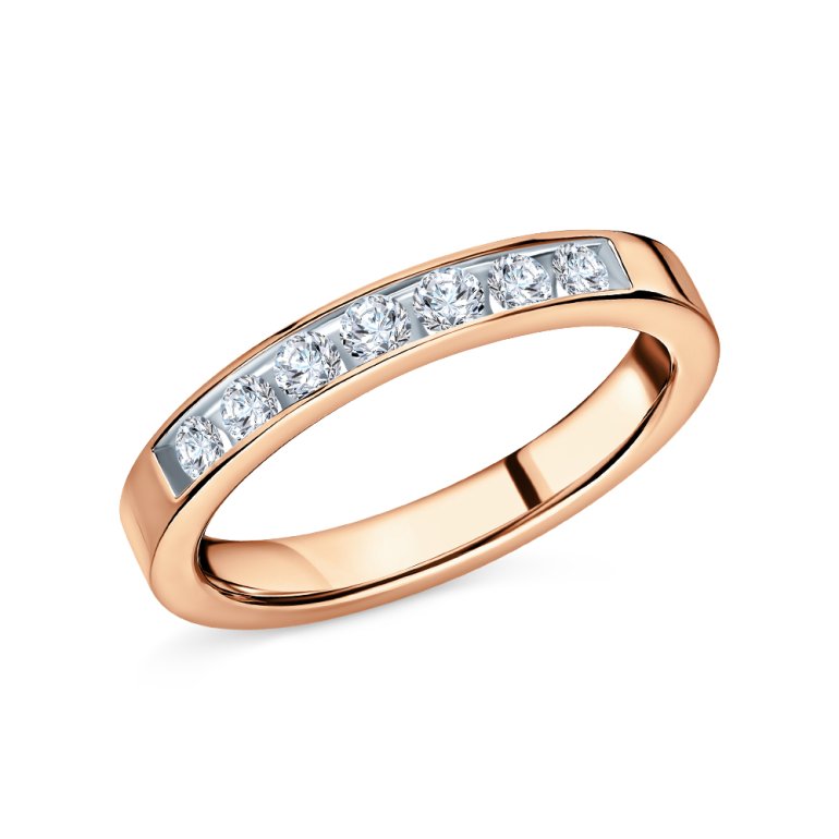 Кольцо «Бриллианты Якутии» с 7 бриллиантами, 0.221 карат, огранка круг 57 граней, цвет 3, чистота 6, тип огранки А; Розовое золото 585 пробы.