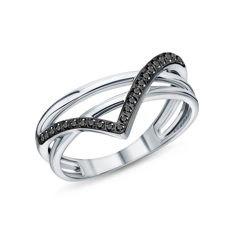 Кольцо с 3 бриллиантами черными природными облагороженными, 0.048 карат, огранка круг 57 граней, цвет 7, чистота 6, тип огранки А; 3 бриллиантами черными природными облагороженными, 0.031 карат, огранка круг 57 граней, цвет 7, чистота 6, тип огранки А; 4 бриллиантами черными природными облагороженными, 0.036 карат, огранка круг 57 граней, цвет 7, чистота 6, тип огранки А; 13 бриллиантами черными природными облагороженными, 0.065 карат, огранка круг 57 граней, цвет 7, чистота 6, тип огранки А; Белое золото 585 пробы.