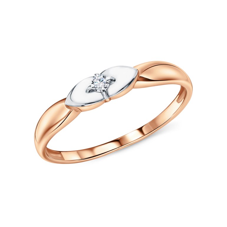 Кольцо с 1 бриллиантом природным, 0.032 карат, огранка круг 57 граней, цвет 3, чистота 6, тип огранки А; Розовое золото 585 пробы.
