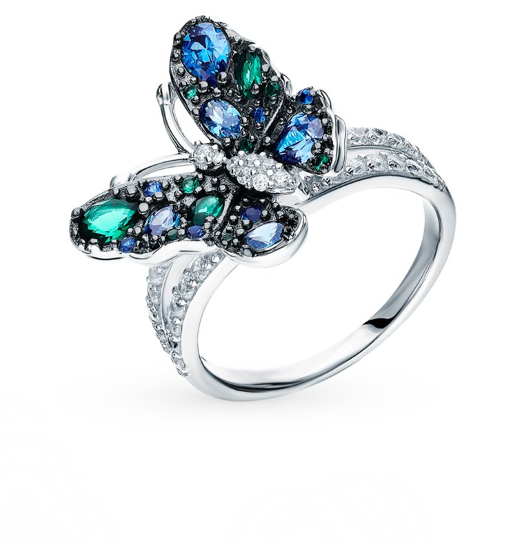 Серебряное кольцо с фианитами и шпинелью синтетическй S60713-K9W-01 Кольца SUNLIGHT | V4.Ru: Маркетплейс