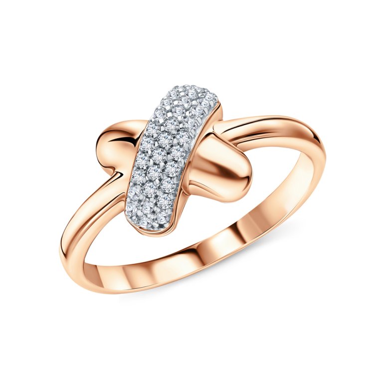 Кольцо с 31 бриллиантом природным, 0.15 карат, огранка круг 17 граней, цвет 2, чистота 2, тип огранки А; Розовое золото 585 пробы.
