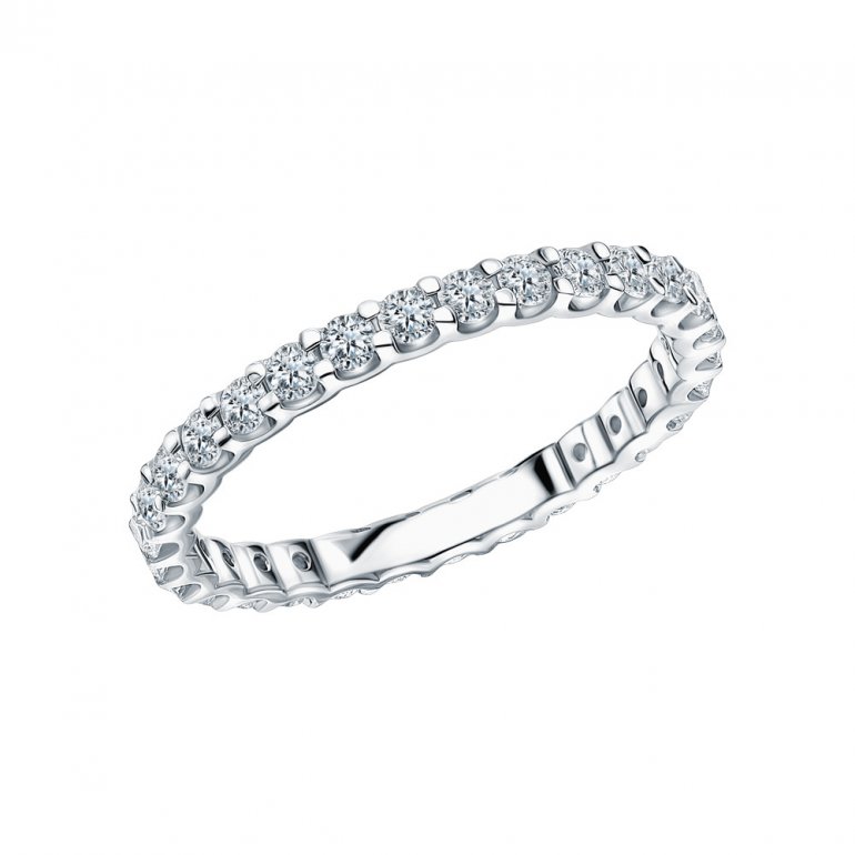 Кольцо с 27 бриллиантами природными, 0.863 карат, огранка круг 57 граней, цвет 3, чистота 6, тип огранки А; Белое золото 585 пробы.