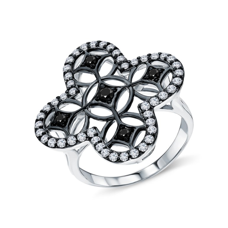 Серебряное кольцо с фианитами и шпинелями природными S42831-K9M-02 Кольца SUNLIGHT | V4.Ru: Маркетплейс