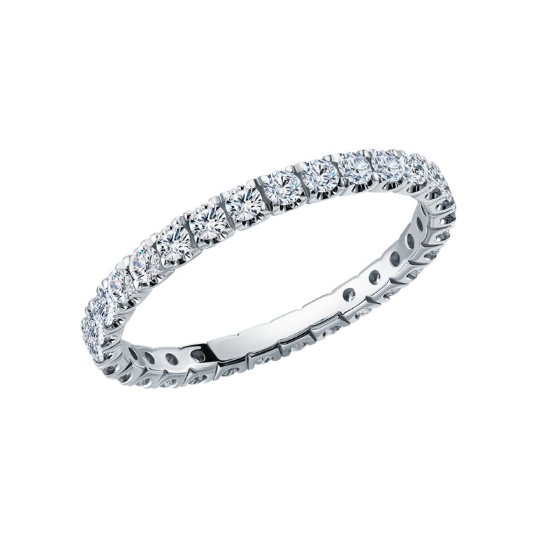 Кольцо с 25 бриллиантами природными, 0.74 карат, огранка круг 57 граней, цвет 4, чистота 6, тип огранки А; Белое золото 585 пробы.