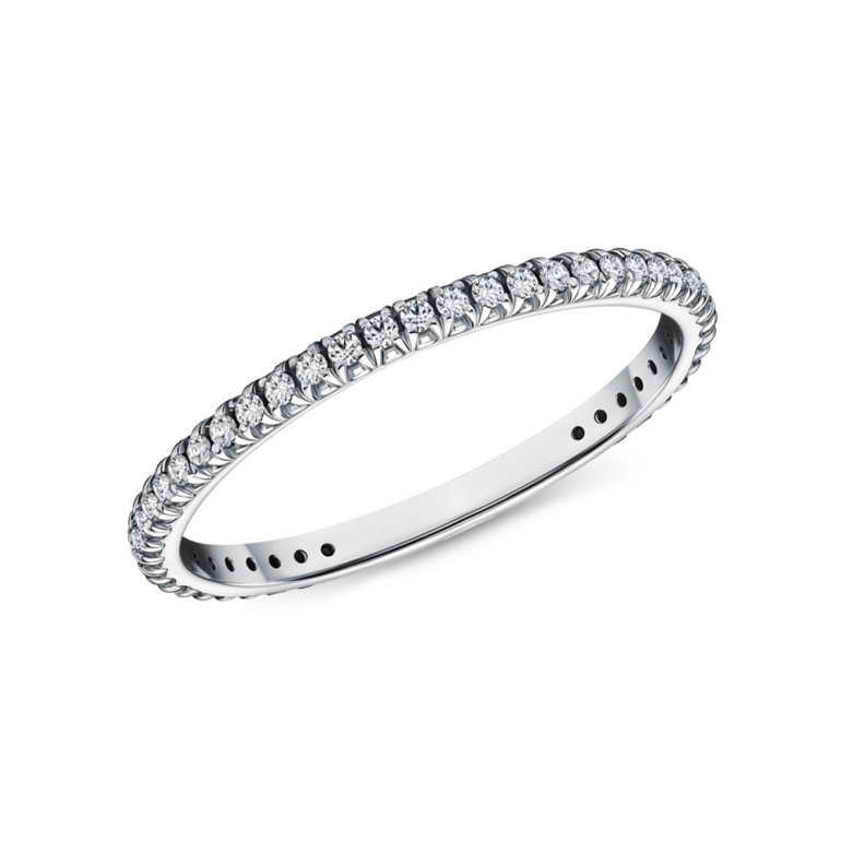 Кольцо с 44 бриллиантами природными, 0.206 карат, огранка круг 57 граней, цвет 3, чистота 6, тип огранки А; Белое золото 585 пробы.