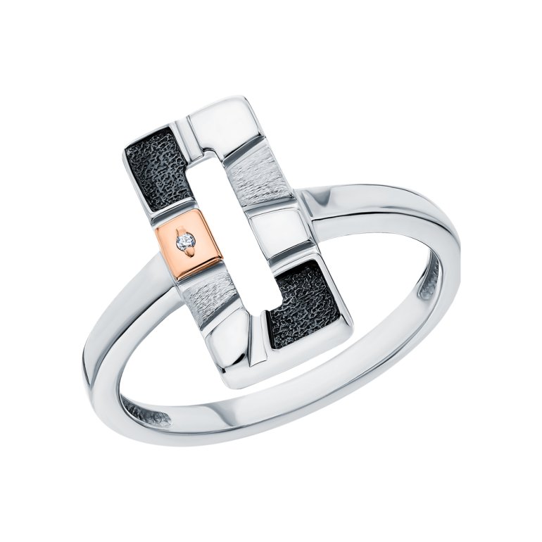 Кольцо с 1 бриллиантом природным, 0.004 карат, огранка круг 17 граней, цвет 2, чистота 3, тип огранки Б; элементы из золота Au585, 0.004 карат; Серебро 925 пробы.