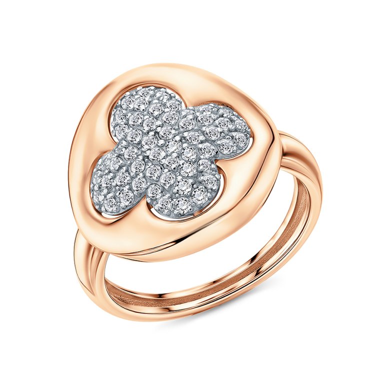 Кольцо, вставка: фианитом бесцветным; Розовое золото 375 пробы.