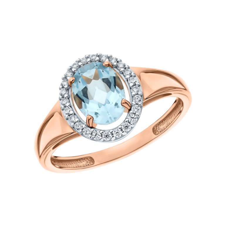 Кольцо с 1 топазом, 1.53 карат, тип огранки Б; фианит; Розовое золото 585 пробы.