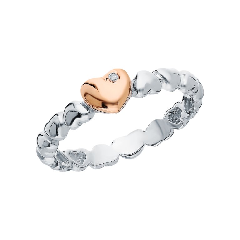 Кольцо с 1 бриллиантом природным, 0.003 карат, огранка круг 17 граней, цвет 2, чистота 2, тип огранки Б; Золото; Серебро 925 пробы.
