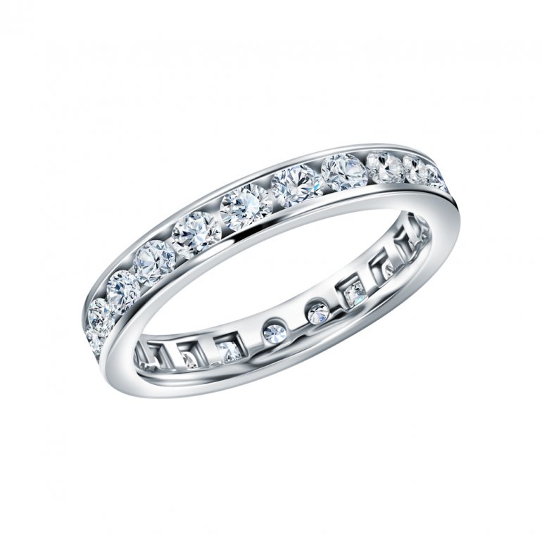 Кольцо с 20 бриллиантами, 1.542 карат, огранка круг 57 граней, цвет 3, чистота 6, тип огранки А; Белое золото 585 пробы.