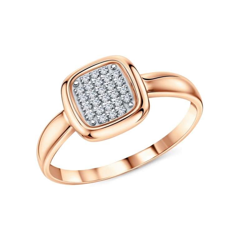 Кольцо с 26 бриллиантами природными, 0.067 карат, огранка круг 17 граней, цвет 2, чистота 2, тип огранки А; Розовое золото 585 пробы.
