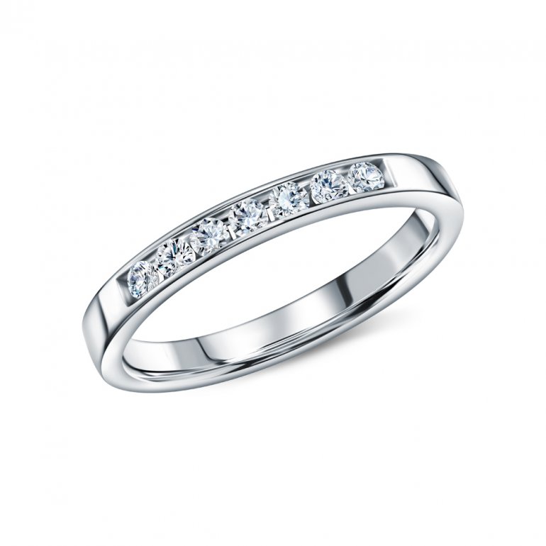 Кольцо «Бриллианты Якутии» с 7 бриллиантами, 0.221 карат, огранка круг 57 граней, цвет 3, чистота 6, тип огранки А; Белое золото 585 пробы.