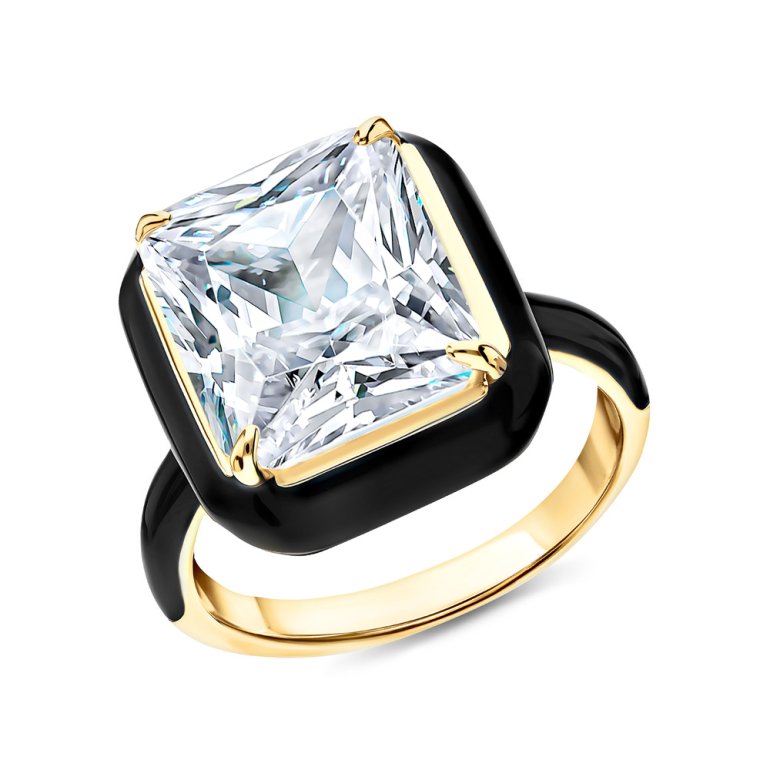 Кольцо, вставка: фианитом бесцветным;  эмаль черная; Серебро 925 пробы.