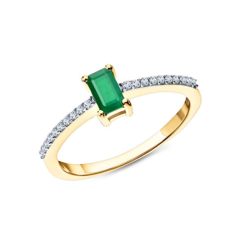 Кольцо с 1 изумрудом природным, 0.4 карат, цвет 4, чистота 3, тип огранки Б; фианитом бесцветным; Серебро 925 пробы.