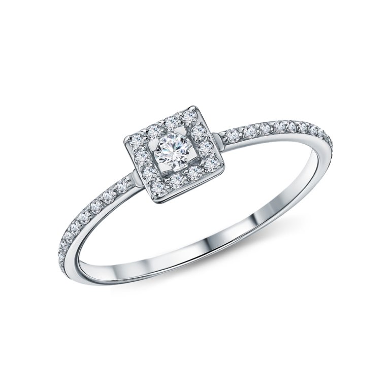 Кольцо с 1 бриллиантом, 0.062 карат, огранка круг 57 граней, цвет 3, чистота 6, тип огранки А; 30 бриллиантами, 0.122 карат, огранка круг 57 граней, цвет 3, чистота 6, тип огранки А; Платина 950 пробы.
