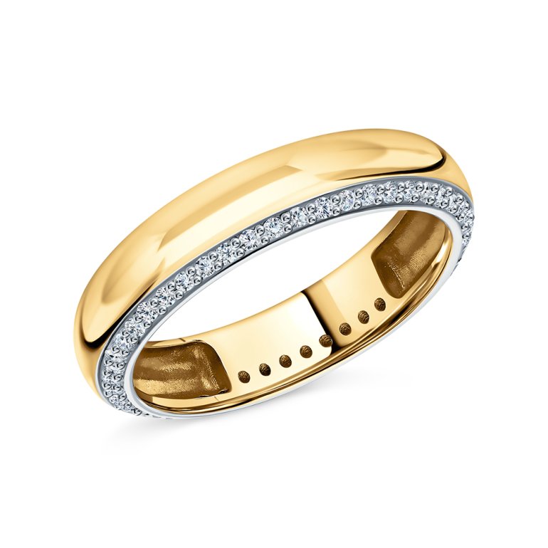 Кольцо с 46 бриллиантами, 0.187 карат, огранка круг 17 граней, цвет 2, чистота 2, тип огранки А; Желтое золото 585 пробы.