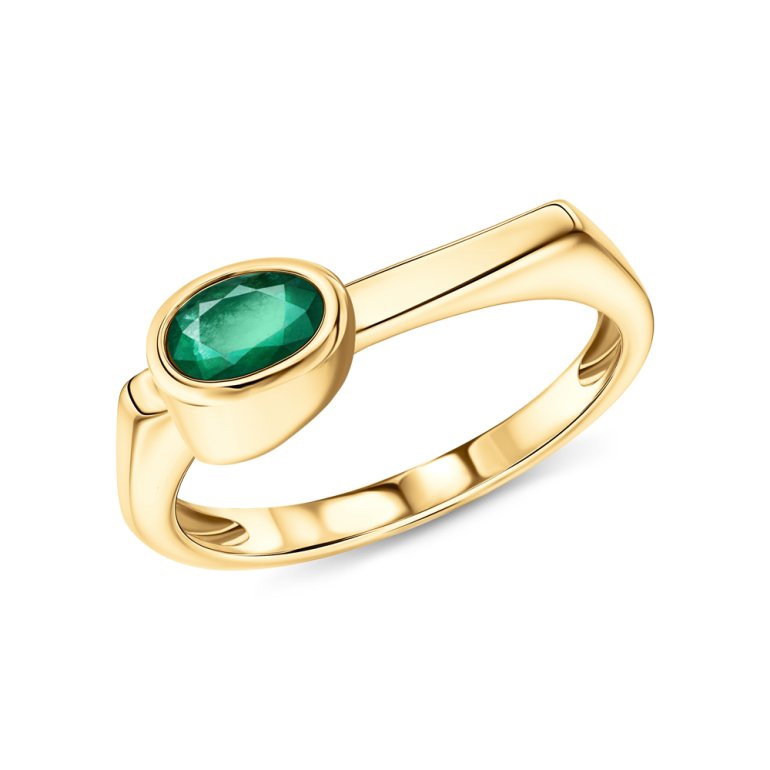 Кольцо с 1 изумрудом природным, 0.306 карат, цвет 3, чистота 3, тип огранки Б; Желтое золото 585 пробы.