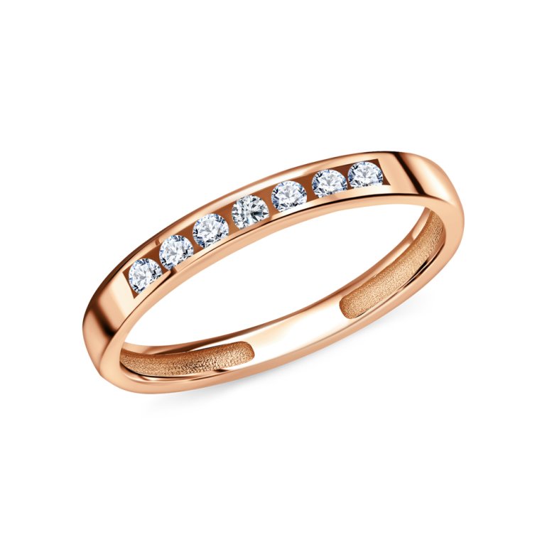 Кольцо с 7 бриллиантами природными, 0.16 карат, огранка круг 57 граней, цвет 3, чистота 6, тип огранки А; Розовое золото 585 пробы.