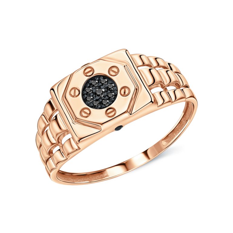 Кольцо, вставка: черным фианитом; Розовое золото 585 пробы.