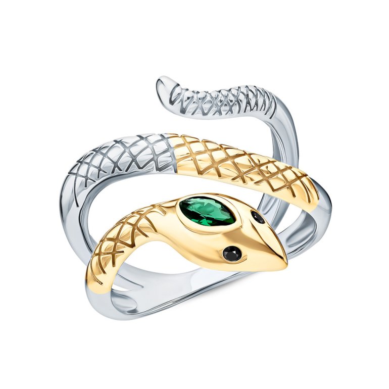 Кольцо, вставка: фианит зеленый;  черным фианитом; Серебро 925 пробы.