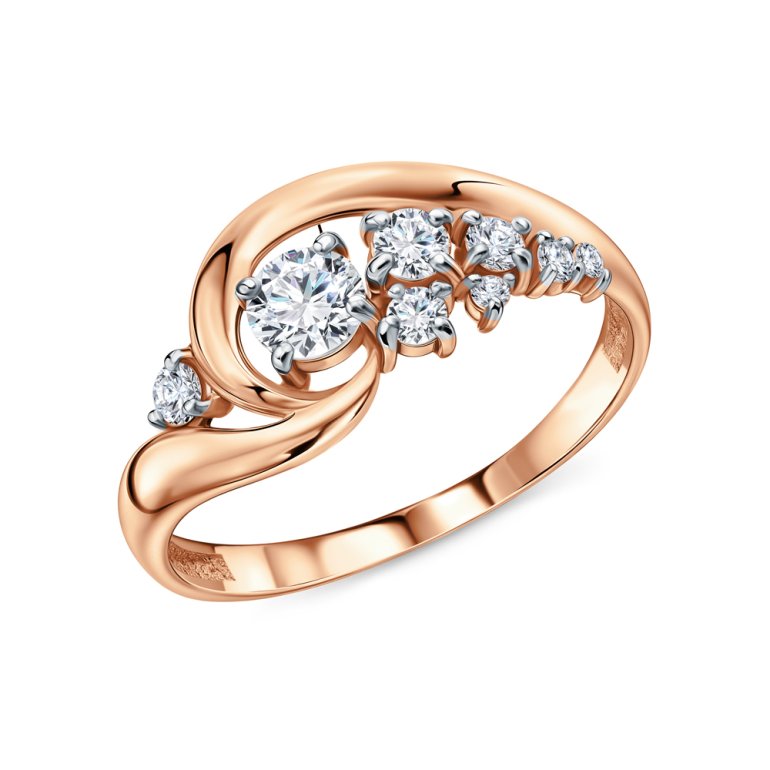 Кольцо, вставка: фианитом бесцветным; Розовое золото 585 пробы.