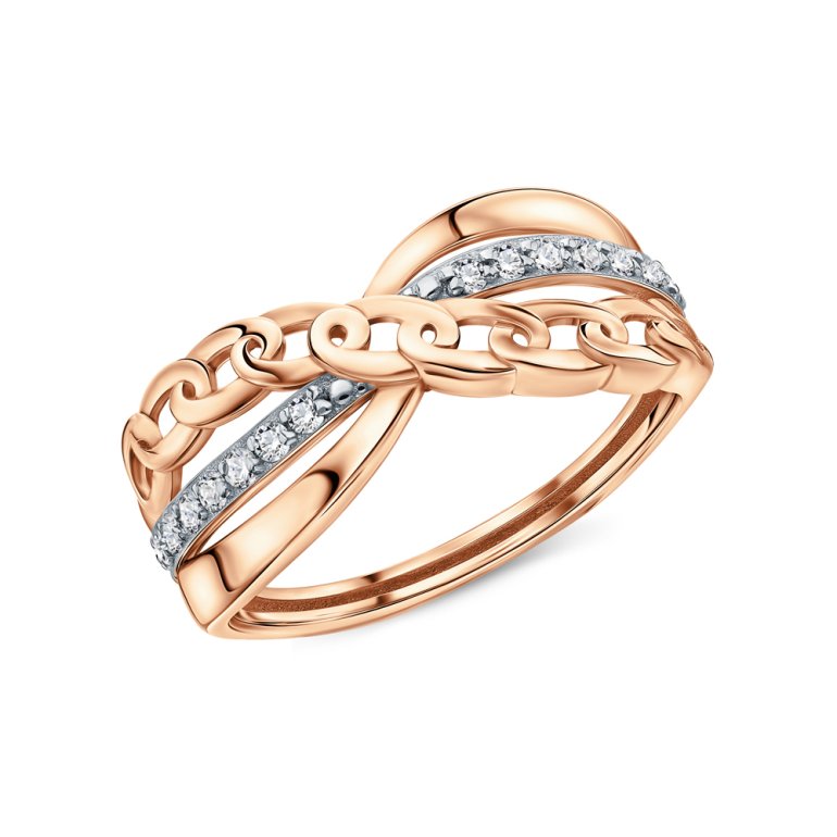 Кольцо, вставка: фианитом бесцветным; Розовое золото 585 пробы.