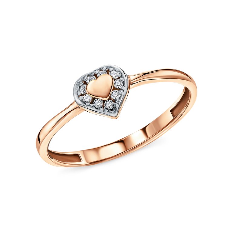 Кольцо, вставка: фианит бесцветный; Розовое золото 585 пробы.
