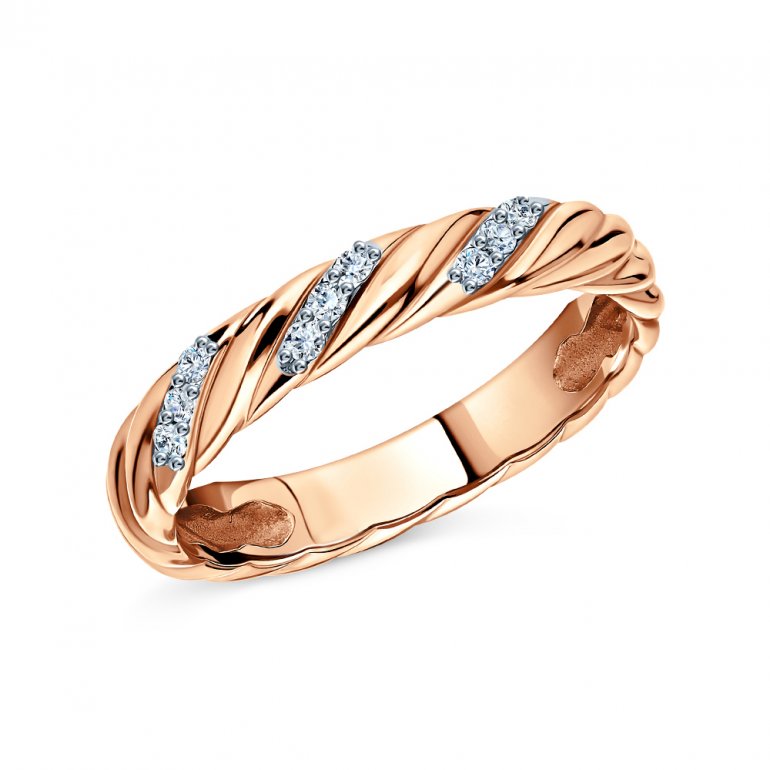 Кольцо с 9 бриллиантами, 0.065 карат, огранка круг 17 граней, цвет 2, чистота 2, тип огранки Б; Розовое золото 585 пробы.