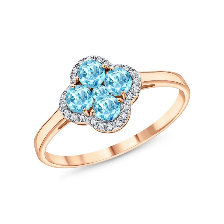Кольцо с 4 топазами свисс природными, 0.535 карат, тип огранки В; 1 топазом свисс природным, 0.03 карат, тип огранки В; фианитом бесцветным; Розовое золото 585 пробы.