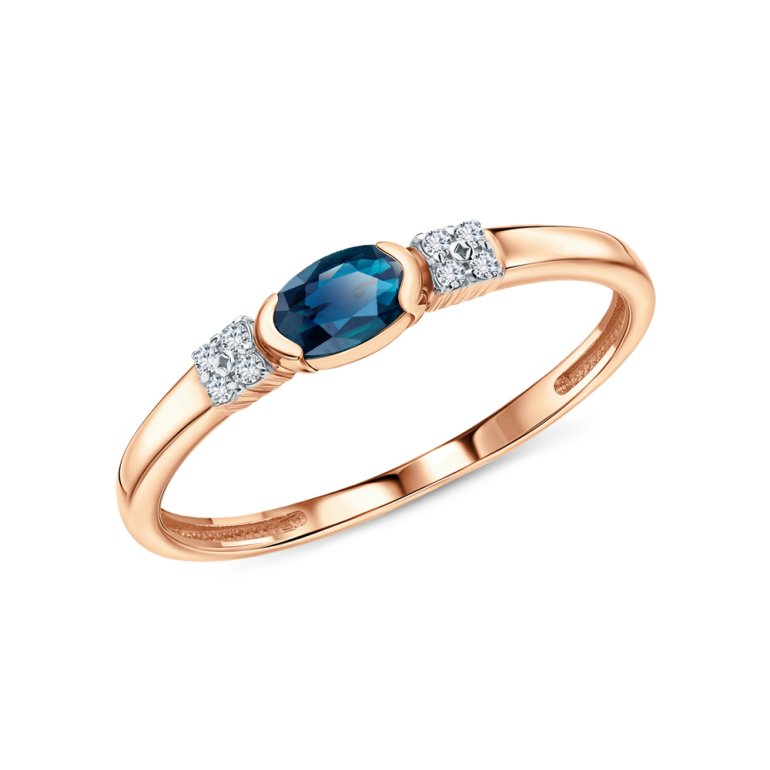 Кольцо с 8 бриллиантами природными, 0.032 карат, огранка круг 17 граней, цвет 2, чистота 2, тип огранки А; 1 топазом лондон природным, 0.301 карат, тип огранки Б; Розовое золото 585 пробы.