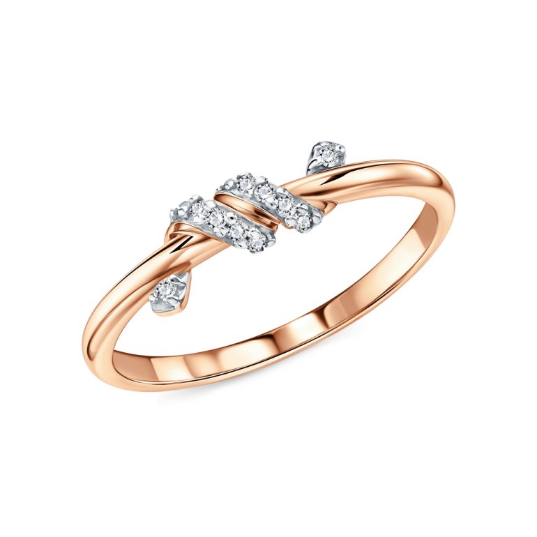 Кольцо с 12 фианитами бесцветными, 0.12 карат, тип огранки Б; Розовое золото 375 пробы.