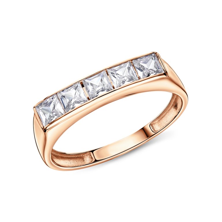 Кольцо с 5 фианитами бесцветными, 1.164 карат, тип огранки Б; Розовое золото 585 пробы.