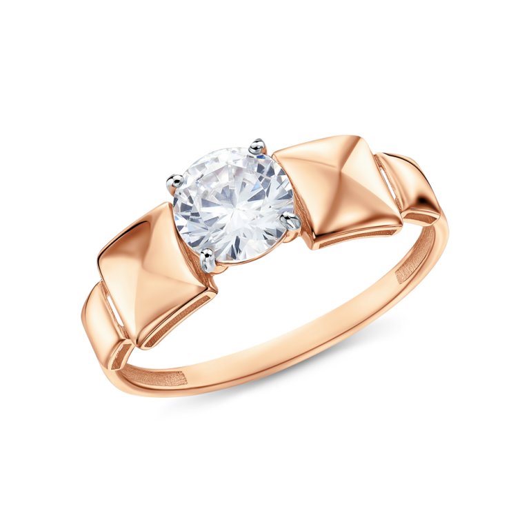 Кольцо, вставка: фианитом бесцветным; Розовое золото 585 пробы.