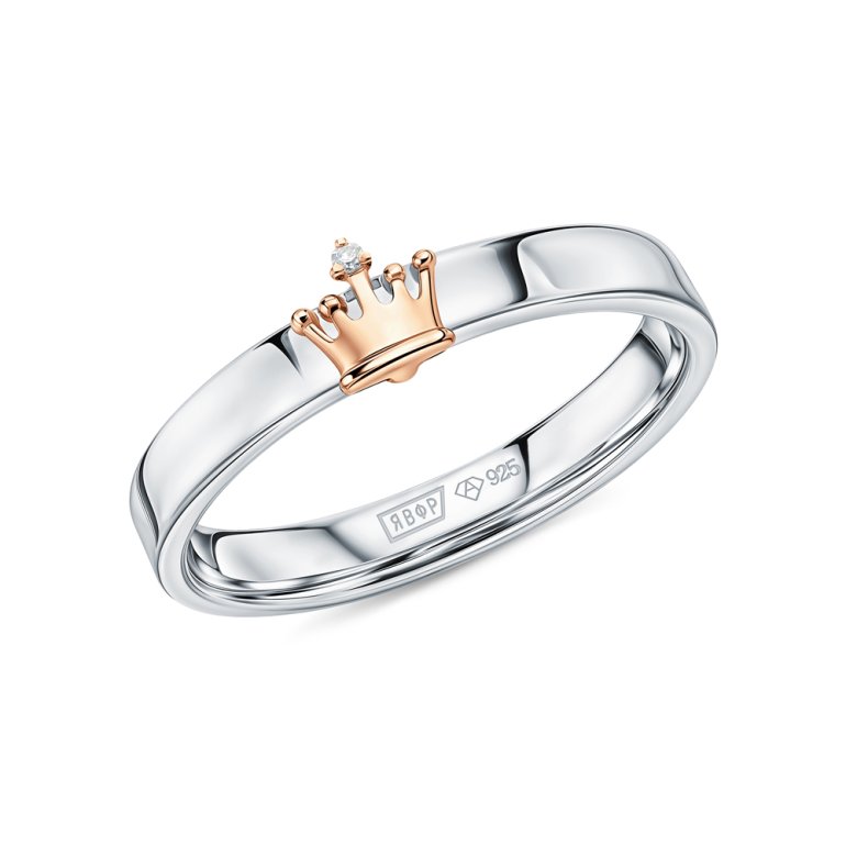 Кольцо с 1 бриллиантом природным, 0.004 карат, огранка круг 17 граней, цвет 3, чистота 3, тип огранки Б; Серебро 925 пробы.