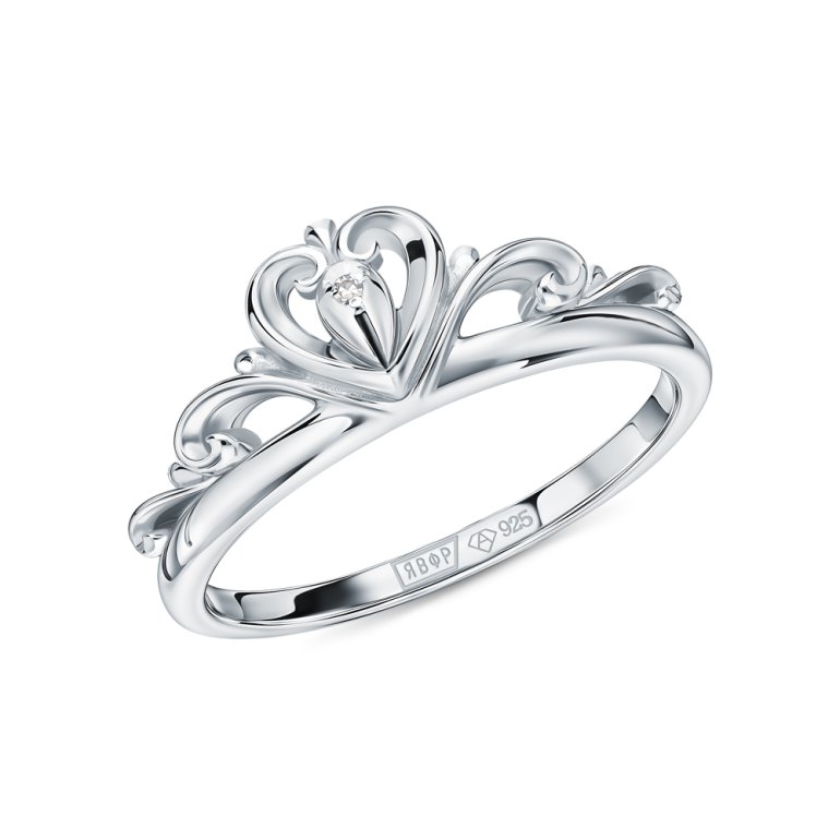 Кольцо с 1 бриллиантом природным, 0.004 карат, огранка круг 17 граней, цвет 3, чистота 3, тип огранки Б; Серебро 925 пробы.