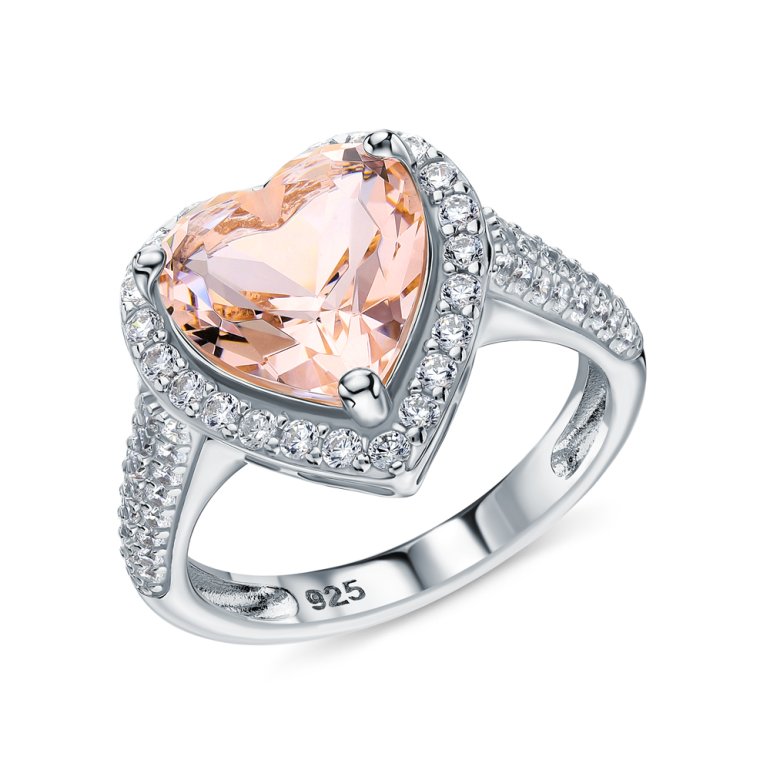 Кольцо, вставка: фианит розовый;  фианитом бесцветным; Серебро 925 пробы.