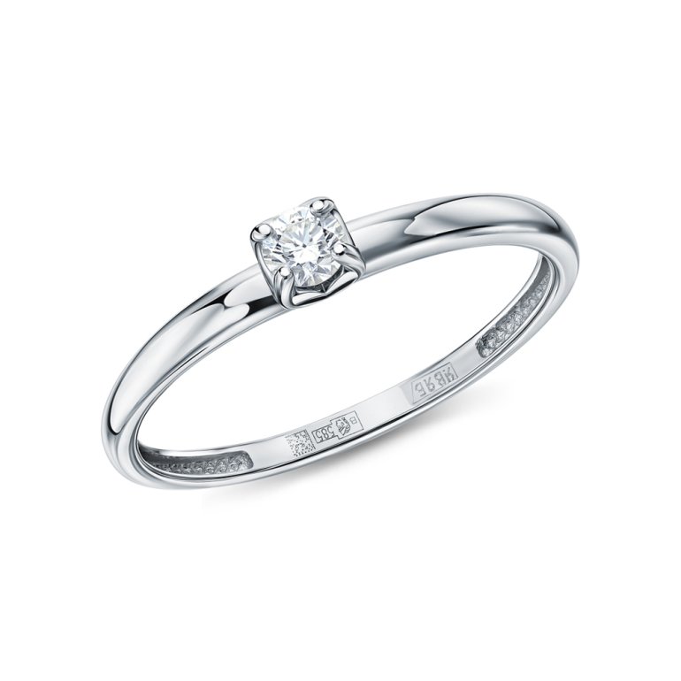 Кольцо с 1 бриллиантом природным, 0.114 карат, огранка круг 57 граней, цвет 3, чистота 6, тип огранки А; Белое золото 585 пробы.