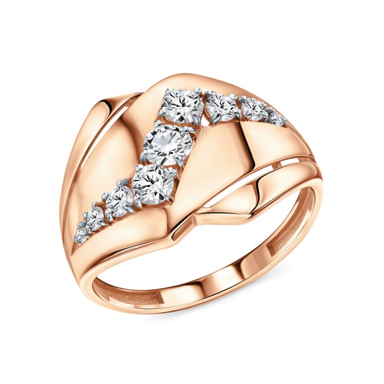 Кольцо, вставка: фианитом бесцветным; Розовое золото 585 пробы.