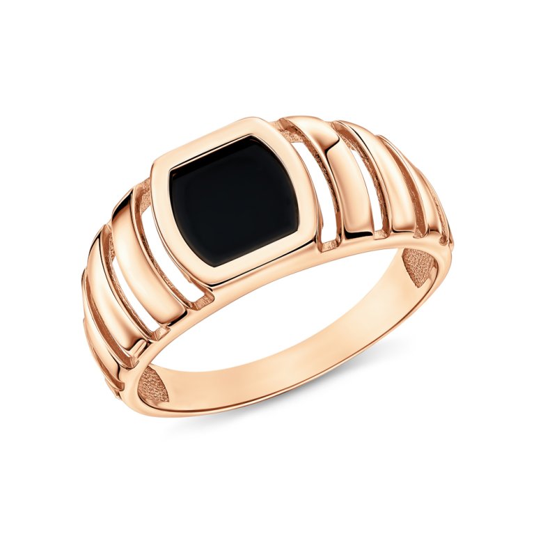 Кольцо, вставка: ситалл черный; Розовое золото 585 пробы.
