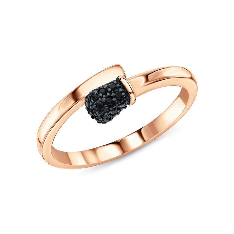 Кольцо, вставка: черным фианитом; Розовое золото 375 пробы.