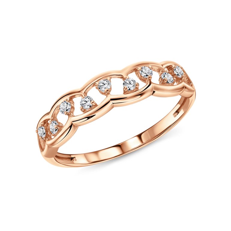 Кольцо, вставка: фианитом бесцветным; Розовое золото 585 пробы.