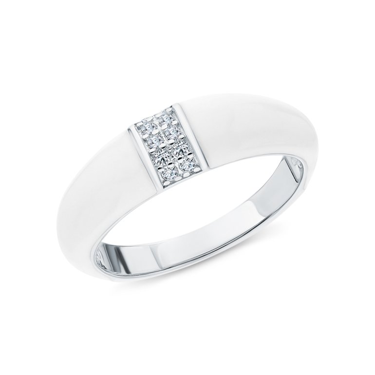 Кольцо, вставка: фианитом бесцветным;  эмаль белая; Серебро 925 пробы.